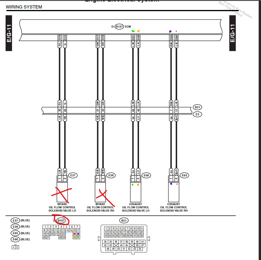 Awesome info. I wonder if the physical ecu from sti to wrx are the same, if I pinned out my wrx ecu running a sti rom if I would have davcs. Did you use the sti immo and cluster cause you didn’t want to clone the immo chip? Also I would be pinning in the s-drive too And maybe add dccd too later? owner232x wrote: here is my diagrams for wiring up the exhaust avcs on the sti ecu. find the plug on the ecu at the bottom of the page look at it from the back and match up the shape to know which plug exactly then use a pick to pull up the tab to unlock the connector so you can add more pins. add the pins to the ecu which are 6 pins. on the exhaust camshaft position sensor B just ground to the engine or body or spliced into pin 48 on engine to body harness for the wl wire splice into 5 on the engine to body harness pinout is in the photo Attachment: cam sensors.png Attachment: oil flow control .png