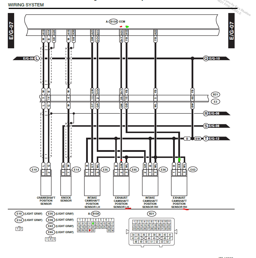 here is my diagrams for wiring up the exhaust avcs on the sti ecu. find the plug on the ecu at the bottom of the page look at it from the back and match up the shape to know which plug exactly then use a pick to pull up the tab to unlock the connector so you can add more pins. add the pins to the ecu which are 6 pins. on the exhaust camshaft position sensor B just ground to the engine or body or spliced into pin 48 on engine to body harness for the wl wire splice into 5 on the engine to body harness pinout is in the photo Attachment: