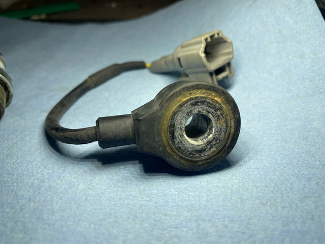 Knock sensor looks corroded but other wise tested fine with a multimeter. 566k ohms which falls within the 4-700k I found online. Cleaning it up and reinstalling it torqued correctly. Pictures are before I cleaned it up of course. We shall see.