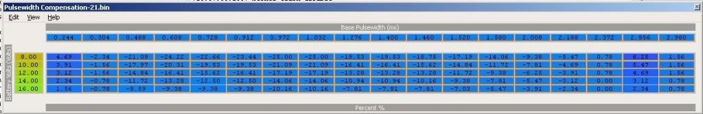 Just quickly, If the minimum pulse width is lets say .350 ms.. Why start the compensation table so early (.124) and waste 4ish columns? Wouldn't they be better used to add resolution past 1ms?