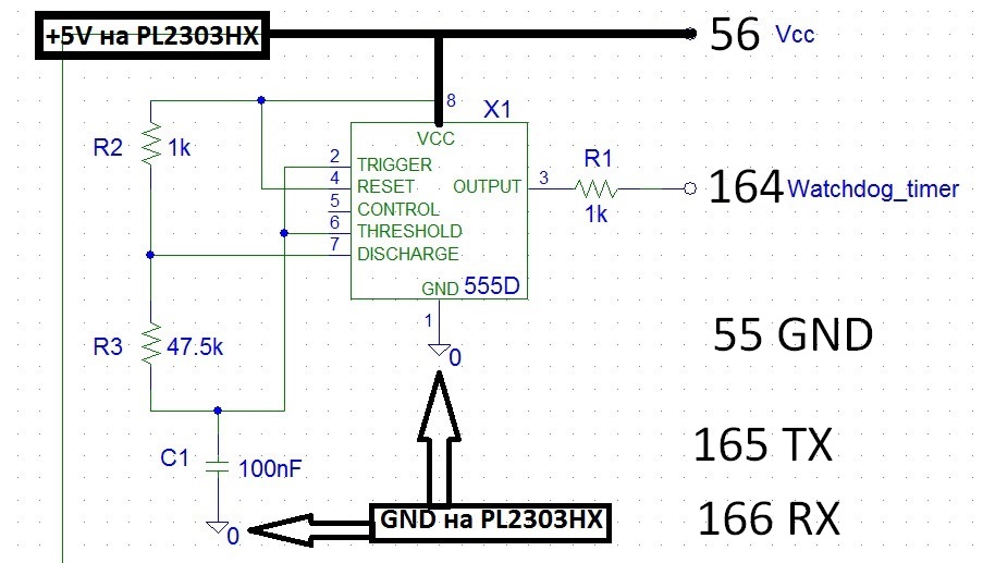 Oh, I see. I did try inverting TX/RX with no success. EDIT from the future: when I did get it to work, it is in fact Pin 9 P409 to TX labeled lead on FTDI chip (pin 1), and Pin 10 P411 RX on FTDI (pin5) So, I built the 555 emulator, but in the instructions it mentions the Arduino doesn't switch as fast because of its code loop, which could be heard when I connected it to a headphone speaker. So I found a square wave generator program for it which is super simple. 125hz works out to be a period of 8 ms, so I set the program to switch every 4ms from high to zero. The voltage is 2.5V. The tone very closely matches the 125hz Youtube video I found. It greatly simplifies the circuitry as I just kept the 1k resistor for the 'watchdog'. Unfortunately, it wouldn't connect in Ecuflash and I had trouble installing FDT on my windows VM. I couldn't find a linux version, but there is one for the Renesa 'Programmer'. My problem now is I don't know how to verify the watchdog is working. I could change the loop value to 3ms, but 150hz equates to 6.6ms, so 6ms would be a little higher hertz. But my Arduino locked up and I just picked up a second one to flash the bootloader and it's back online. I'll try 3ms next.. I read from Sasha that "SH reset pin ( CN1 pin7)" should be switching about every 50ms, but I didnt find that pin..? Plus I'm not sure if my voltmeter would show anything that fast. ( viewtopic.php?f=7&t=7136 - half way down). I tried measuring pin 4 for reset on CN402, but it only shows a constant ~.26V. Any suggestions? I'm pretty sure I can get the Arduino to output the right 'tickler' frequency, even if I have to use one of the PWN pins and adjust the duty cycle, because it bricked when I tried to put in a decimal value for the 3.5 miliseconds. My neighbor has an old oscilloscope, and actually now I have a second Arduino, I saw I can make a simple one from it and input to an audio jack to the PC. I should be able to check the frequency with it. I wonder if the Volts are too low.. maybe, but 2.5V is half of 5V which my voltmeter is probably reading as an average. I did get some noise out of my FTDI Tx/Rx leads when I connected them to the minispeaker. I'm hoping my USB power source isn't too noisy. I just noticed Arduino 9V in takes up to 12V, so may try hooking all up to a 12V Milwakee battery pack. I need to find CN1 pin7 first to make sure my 'tickler' is actually working though. And one thread said its possible to use the Tx/Rx on the Arduino, so I might also check that as an alternative to the FTDI cable.