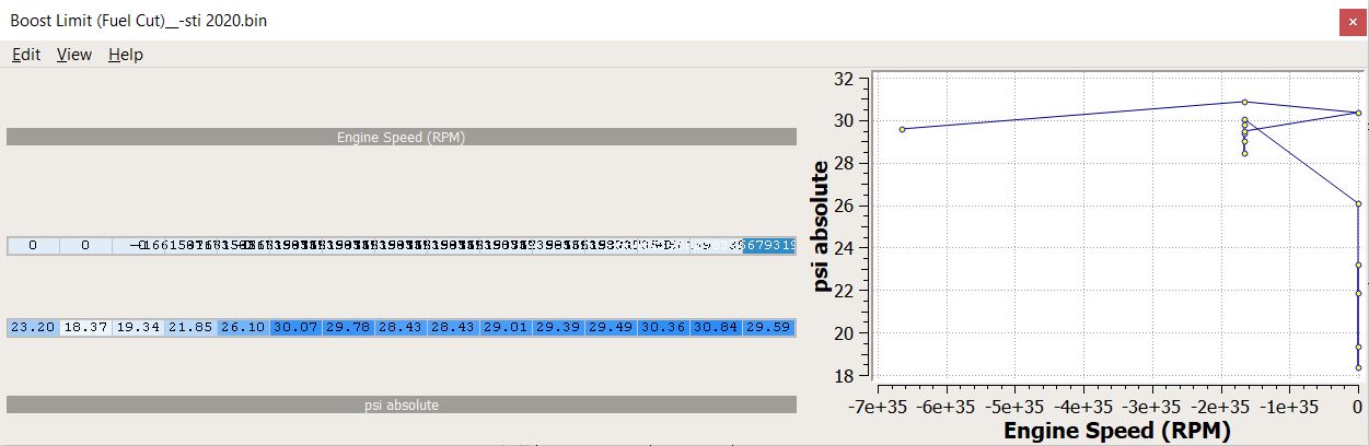 CryptikPunk wrote: Hi! I noticed an oddity with Boost Limit (Fuel Cut)_ and wondering if it's just my base??? I did download the latest 32BITBASE from git, other roms (AE5T200V/AE5T201V) show the table as they should. This is what my defs show: Attachment: