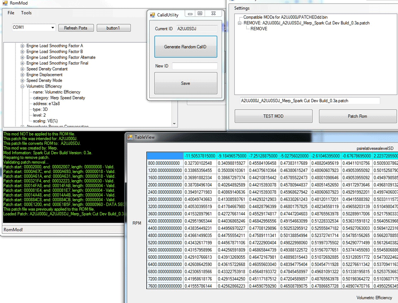 I created a simple forms GUI a while ago that auto-detects CALID, has patch files incorporated into the binary, and successfully patched a test rom. -write code to select proper patch files based upon CALID -integrate exception/errors with GUI better (currently only pipes console to textbox) -add ability to 'save patched rom as'